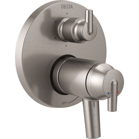 T27T959-SS Contemporary Two Handle TempAssure 17T Series Valve Trim With 6-Setting Integrated Diverter Stainless