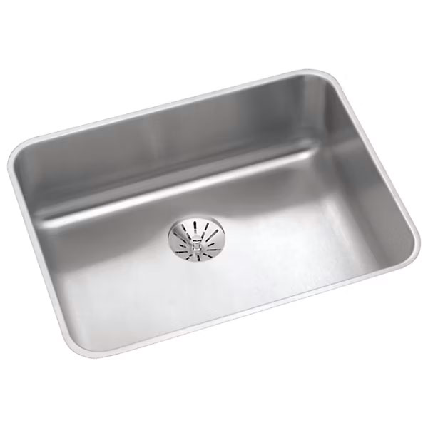 ELUHAD211550PD Elkay Lustertone 23-1/2" X18-1/4" X 4-7/8" Undermount Single Bowl ADA Kitchen Sink With Rear Center Perfect Drain 18 Gauge Stainless Steel