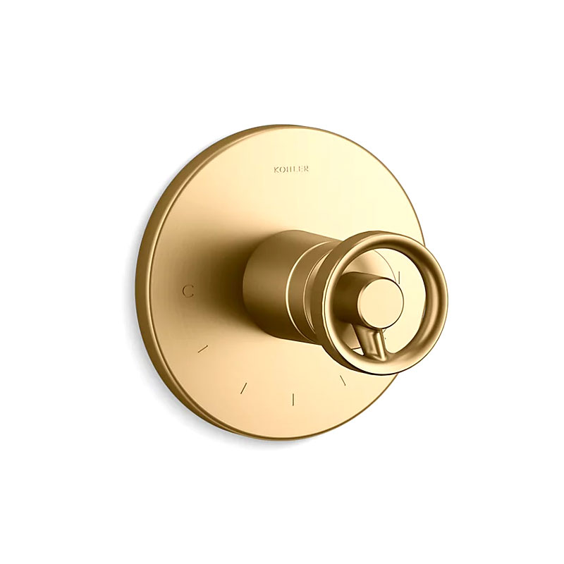 T78027-9-2MB Kohler Components Thermostatic Valve Trim Only With Single Industrial Handle Vibrant Brushed Moderne Brass