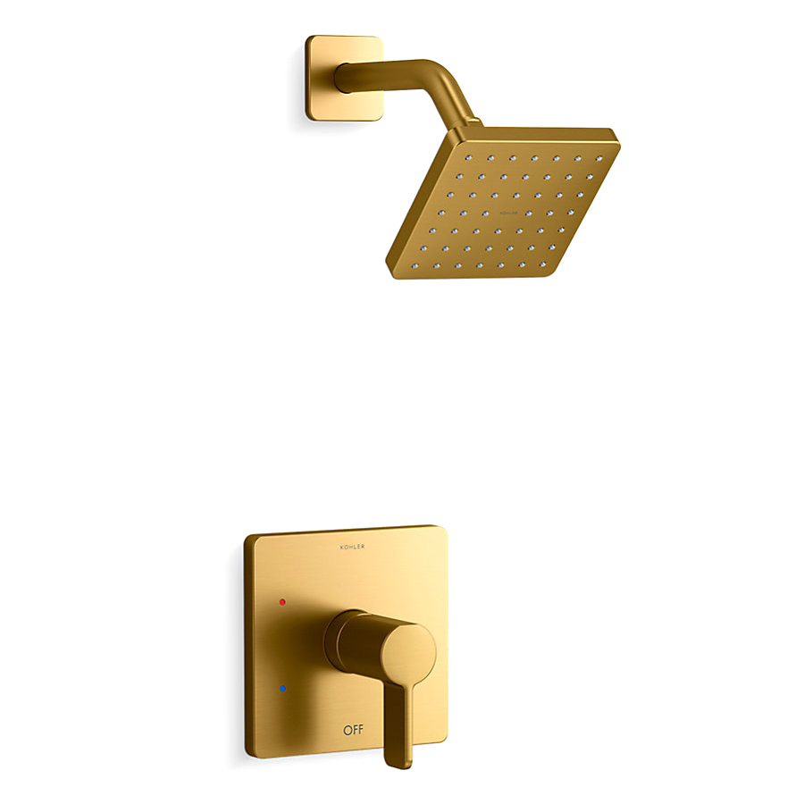 TS23503-4-2MB Kohler Parallel Rite-Temp Shower Trim With 2.50 GPM Single-Function Square Katalyst Showerhead Vibrant Brushed Moderne Brass