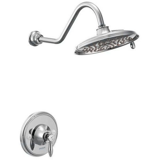 Specification Sheet - Elegant Traditional Design Details and Distinctive Finishing Touches Present a Sense of Uncommon Luxury in the Weymouth Collection; Distinctive Accents Include Porcelain Inlays that Feature Euro Influenced Decorative Script and Signature Styling Elements to Make an Extravagant Statement in Your Traditional Bath; Chrome Finish is Highly Reflective for a Mirror Like Look that Works with any Decorating Style; Lever Handles Make it Easy to Adjust the Water; Equipped with the Posi Temp Pressure Balancing Control Valve to Help Maintain Water Temperature in the Shower; Generously Sized 9" Diameter Rainshower for Exceptional Water Coverage; Concentrated Rinse; Full Spray; Advanced, Self Pressurizing Moen Immersion Rainshower Technology Channels Water Through the Showerhead with Three Times More Spray Power Than Most Rainshowers for More Thorough Rinse; Built on the Moen M-Pact Common Valve System, Allowing you to Update the Faucet Style in the Future Without Replacing any Plumbing; Complies with Americans with Disabilities Act (ADA) Specifications; Lifetime Limited Warranty