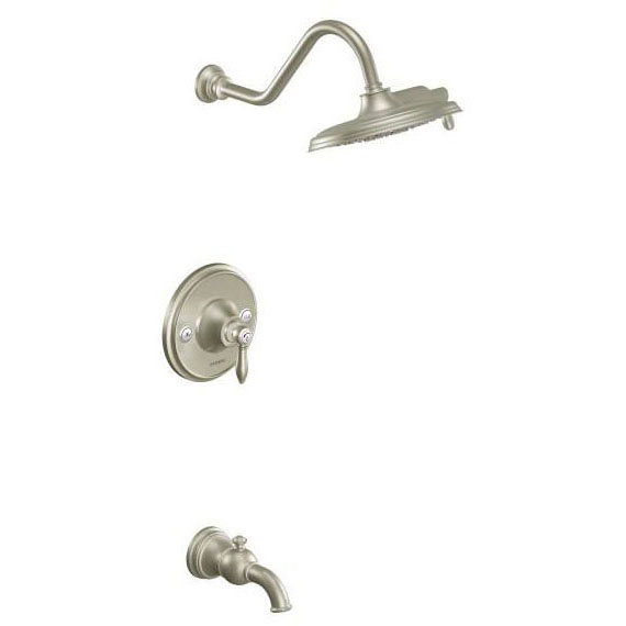Specification Sheet - Elegant, Traditional Design Details and Distinctive Finishing Touches Present a Sense of Uncommon Luxury in the Weymouth Collection; Distinctive Accents Include Porcelain Inlays that Feature Euro Influenced Decorative Script and Signature Styling Elements to Make an Extravagant Statement in Your Traditional Bath; Brushed Nickel Finish Brings the Warm Look of Stainless to Your Bath; Lever Handles Make it Easy to Adjust the Water; Equipped with the PosiTemp Pressure Balancing Control Valve to Help Maintain Water Temperature in the Shower; Concentrated Rinse; Full Spray; Advanced, Self Pressurizing Moen Immersion Rainshower Technology Channels Water Through the Showerhead with Three Times More Spray Power than Most Rainshowers for a More Thorough Rinse; Built on the Moen M Pact Common Valve System, Allowing you to Update the Faucet Style in the Future Without Replacing any Plumbing; Lifetime Limited Warranty