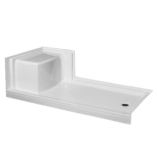 SB-7236L RS WHT Oasis 60" X 36" Seated Shower Base with Left-Hand Drain & Right Hand Seat White