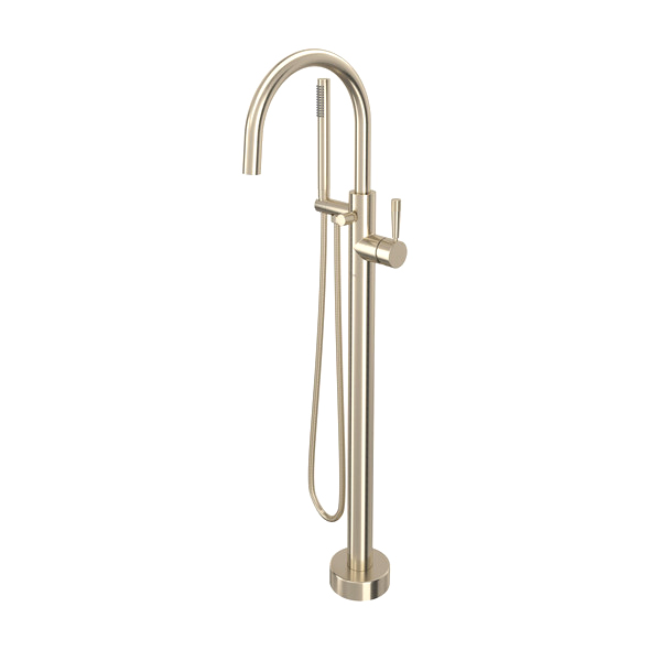 TMB06HF1LMSTN Rohl Graceline Floor Mount Single Handle Tub Filler with Knurled Spout & 1.80 GPM Handshower Satin Nickel
