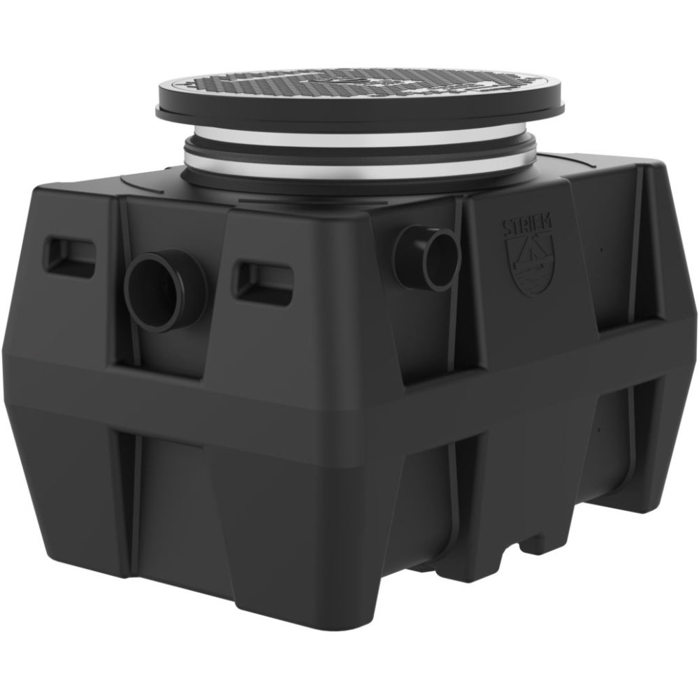 Specification Sheet - Seamless Medium Density Polyethylene Tank; Cover Placement Allows Full Access to Tank for Proper Maintenance; Engineered Inlet and Outlet Diffusers are Removable to Inspect/Clean Piping; Striem OIL RESERVE Oil/Sand Separator Model OS-50 Shall be Lifetime Guaranteed; ?Made in USA?